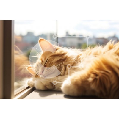Υπάρχει δυνατότητα προσωποποίησης με δική σας φωτογραφία και προσαρμογής διαστάσεων κατόπιν παραγγελίας. Το συγεκεριμενο Puzzle 10x10 cm – 25 κομμ παρουσιαζει Αυτή η εικόνα παρουσιάζει μια χνουδωτή πορτοκαλί και λευκή γάτα να κοιμάται ήσυχα σε ένα περβάζι. Η γούνα της γάτας είναι περιποιημένη και τα μάτια της μισόκλειστα, ενδεικτικό του βαθύ ύπνου της. Στο βάθος, από το παράθυρο διακρίνεται ένα ασ