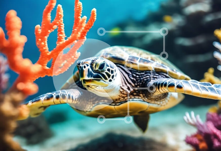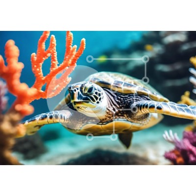 Υπάρχει δυνατότητα προσωποποίησης με δική σας φωτογραφία και προσαρμογής διαστάσεων κατόπιν παραγγελίας. Το συγεκεριμενο Puzzle 10x10 cm – 25 κομμ παρουσιαζει Αυτή η εικόνα παρουσιάζει μια θαλάσσια χελώνα που κολυμπάει με χάρη σε μια ζωντανή υποβρύχια σκηνή γεμάτη με πολύχρωμα κοράλλια. Η χελώνα συλλαμβάνεται στη μέση της κίνησης, με τα βατραχοπέδιλά της σε έκταση, αναδεικνύοντας το κομψό της στυλ