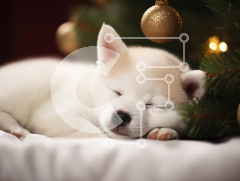 Υπάρχει δυνατότητα προσωποποίησης με δική σας φωτογραφία και προσαρμογής διαστάσεων κατόπιν παραγγελίας. Το συγεκεριμενο Puzzle 10x10 cm – 25 κομμ παρουσιαζει Αυτή η εικόνα παρουσιάζει ένα κουτάβι που κοιμάται φωλιασμένο σε μια απαλή λευκή επιφάνεια, που περιβάλλεται από χριστουγεννιάτικα στολίδια. Το κουτάβι έχει ανοιχτόχρωμο τρίχωμα με πιο σκούρο έμπλαστρο στο κεφάλι του και φαίνεται ήρεμο με κλ