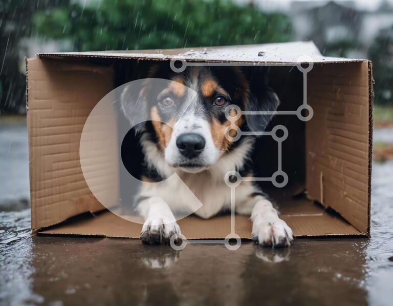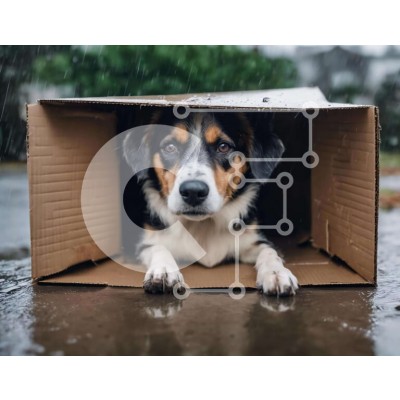 Υπάρχει δυνατότητα προσωποποίησης με δική σας φωτογραφία και προσαρμογής διαστάσεων κατόπιν παραγγελίας. Το συγεκεριμενο Puzzle 10x10 cm – 25 κομμ παρουσιαζει Αυτή η εικόνα παρουσιάζει έναν καφέ και λευκό σκύλο που κάθεται μέσα σε ένα ανοιχτό χαρτόκουτο στη βροχή. Ο σκύλος κοιτάζει την κάμερα με μια περίεργη έκφραση, υποδηλώνοντας μια προθυμία για εξερεύνηση ή παιχνίδι. Η βροχή προσθέτει μια συγκλ
