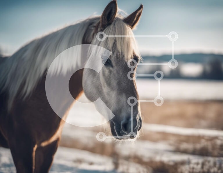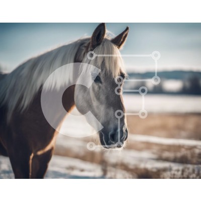 Υπάρχει δυνατότητα προσωποποίησης με δική σας φωτογραφία και προσαρμογής διαστάσεων κατόπιν παραγγελίας. Το συγεκεριμενο Puzzle 10x10 cm – 25 κομμ παρουσιαζει Αυτή η εικόνα παρουσιάζει ένα όμορφο καφέ και λευκό άλογο σε ένα χιονισμένο χωράφι. Το άλογο είναι τοποθετημένο με το κεφάλι του ελαφρώς γερμένο, δημιουργώντας μια αίσθηση περιέργειας και κομψότητας. Το βλέμμα του στρέφεται προς τον θεατή, π