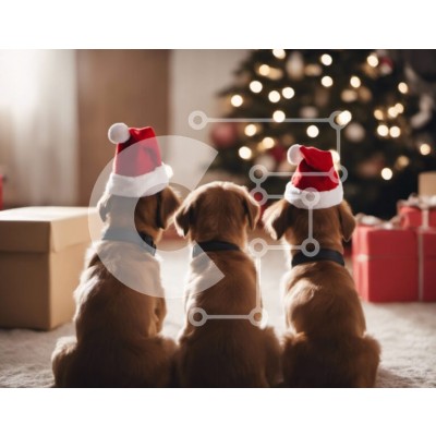 Υπάρχει δυνατότητα προσωποποίησης με δική σας φωτογραφία και προσαρμογής διαστάσεων κατόπιν παραγγελίας. Το συγεκεριμενο Puzzle 10x10 cm – 25 κομμ παρουσιαζει Αυτή η εικόνα παρουσιάζει τρία καφέ σκυλιά που φορούν καπέλα Άγιου Βασίλη και κάθονται στο πάτωμα μπροστά από ένα χριστουγεννιάτικο δέντρο. Υπάρχουν πολλά δώρα τοποθετημένα γύρω από το δέντρο, υποδηλώνοντας ότι τα σκυλιά μπορεί να γιορτάζουν