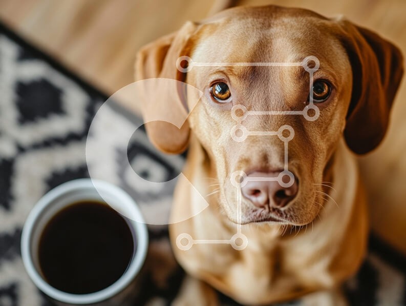 Υπάρχει δυνατότητα προσωποποίησης με δική σας φωτογραφία και προσαρμογής διαστάσεων κατόπιν παραγγελίας. Το συγεκεριμενο Puzzle 10x10 cm – 25 κομμ παρουσιαζει Αυτή η εικόνα παρουσιάζει έναν σκύλο που κάθεται σε ένα χαλί με σχέδια δίπλα σε ένα φλιτζάνι μαύρο καφέ. Τα εκφραστικά μάτια του σκύλου κοιτάζουν κατευθείαν την κάμερα, μεταφέροντας μια αίσθηση περιέργειας και ζεστασιάς. Ο απαλός φωτισμός εν