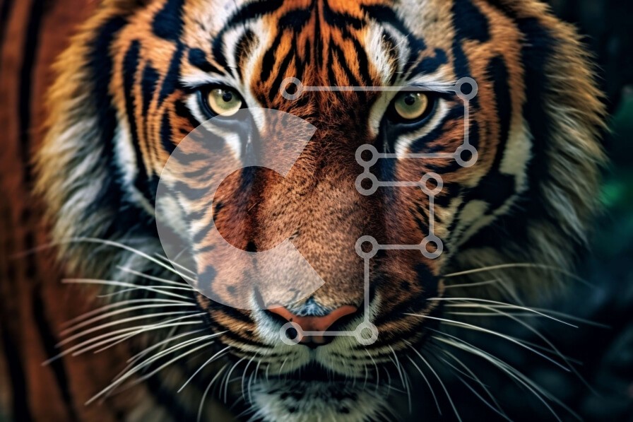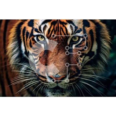 Υπάρχει δυνατότητα προσωποποίησης με δική σας φωτογραφία και προσαρμογής διαστάσεων κατόπιν παραγγελίας. Το συγεκεριμενο Puzzle 10x10 cm – 25 κομμ παρουσιαζει Αυτή είναι μια κοντινή φωτογραφία του προσώπου μιας τίγρης. Η τίγρη κοιτάζει κατευθείαν την κάμερα με τα διαπεραστικά της μάτια. Το τρίχωμα της τίγρης είναι σκούρο καφέ και οι ρίγες του είναι ευδιάκριτες. Τα μουστάκια της τίγρης είναι μακριά