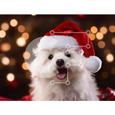 Υπάρχει δυνατότητα προσωποποίησης με δική σας φωτογραφία και προσαρμογής διαστάσεων κατόπιν παραγγελίας. Το συγεκεριμενο Puzzle 10x10 cm – 25 κομμ παρουσιαζει Αυτή η εικόνα παρουσιάζει ένα χαρούμενο λευκό σκυλί που φορά ένα κόκκινο καπέλο Άγιου Βασίλη, τοποθετημένο μπροστά από ένα θολό εορταστικό φόντο με πολύχρωμα φώτα. Η χνουδωτή γούνα και τα λαμπερά μάτια του σκύλου μεταδίδουν μια αίσθηση χαράς