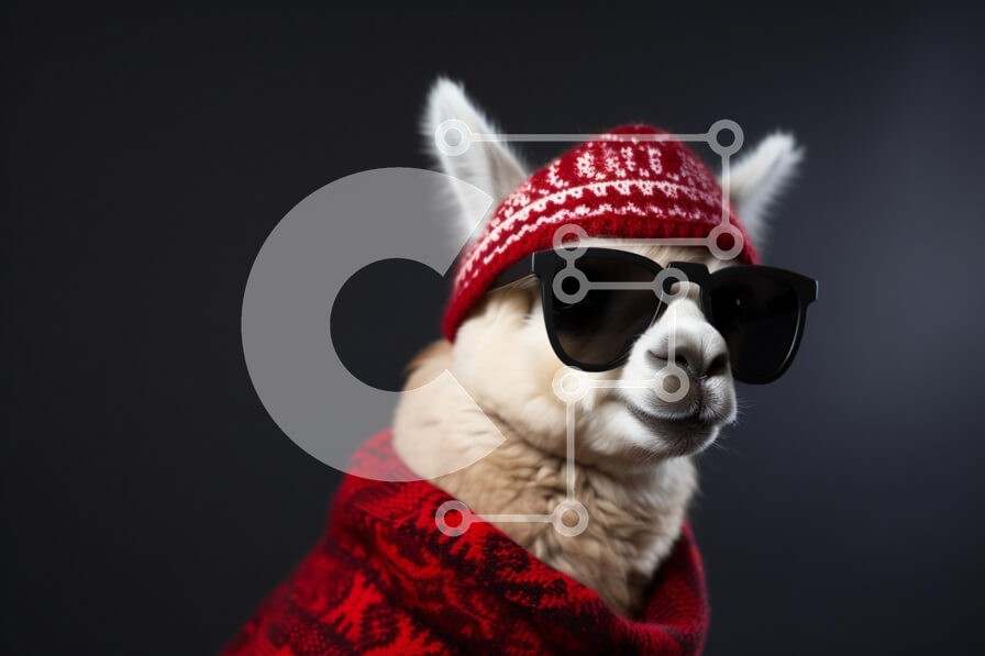 Υπάρχει δυνατότητα προσωποποίησης με δική σας φωτογραφία και προσαρμογής διαστάσεων κατόπιν παραγγελίας. Το συγεκεριμενο Puzzle 10x10 cm – 25 κομμ παρουσιαζει Αυτή η εικόνα παρουσιάζει μια κομψή λάμα που φορά ένα κόκκινο πλεκτό καπέλο και μαύρα γυαλιά ηλίου. Η λάμα είναι ντυμένη σε μια κόκκινη κουβέρτα με σχέδια, παρουσιάζοντας μια μοντέρνα και χιουμοριστική εμφάνιση. Το φόντο είναι σκούρο, που το