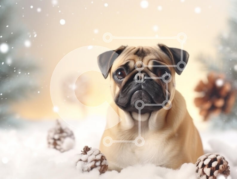 Υπάρχει δυνατότητα προσωποποίησης με δική σας φωτογραφία και προσαρμογής διαστάσεων κατόπιν παραγγελίας. Το συγεκεριμενο Puzzle 10x10 cm – 25 κομμ παρουσιαζει Αυτή η εικόνα παρουσιάζει ένα σκυλί πατημασιά που κάθεται σε ένα χιονισμένο περιβάλλον στολισμένο με κουκουνάρια και απαλό χιόνι. Το φόντο είναι θολό με ανοιχτοπράσινα δέντρα, δημιουργώντας μια γαλήνια χειμωνιάτικη ατμόσφαιρα. Οι νιφάδες χιο