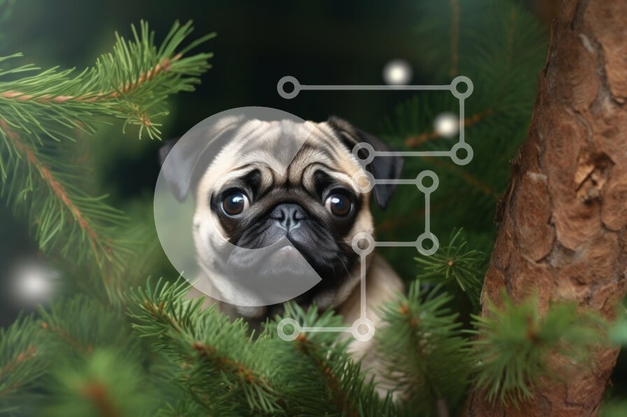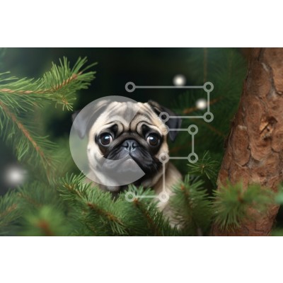 Υπάρχει δυνατότητα προσωποποίησης με δική σας φωτογραφία και προσαρμογής διαστάσεων κατόπιν παραγγελίας. Το συγεκεριμενο Puzzle 10x10 cm – 25 κομμ παρουσιαζει Αυτή η εικόνα παρουσιάζει ένα χαριτωμένο σκυλί πατημασιά που κρυφοκοιτάζει μέσα από καταπράσινα κλαδιά πεύκου. Το πατημασιά έχει μεγάλα, εκφραστικά μάτια και μια λυπημένη έκφραση, που έρχεται σε όμορφη αντίθεση με το ζωντανό πράσινο που το π