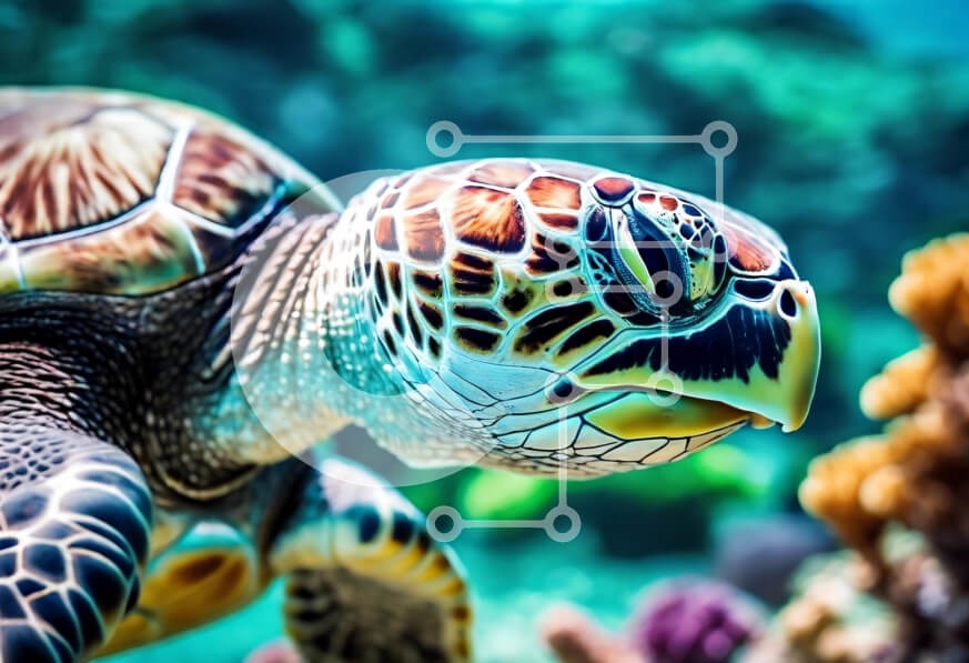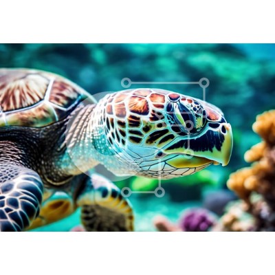 Υπάρχει δυνατότητα προσωποποίησης με δική σας φωτογραφία και προσαρμογής διαστάσεων κατόπιν παραγγελίας. Το συγεκεριμενο Puzzle 10x10 cm – 25 κομμ παρουσιαζει Αυτή η εικόνα παρουσιάζει μια κοντινή θέα μιας ζωντανής πράσινης θαλάσσιας χελώνας που κολυμπά με χάρη κάτω από το νερό. Το κέλυφος της χελώνας παρουσιάζει περίπλοκα μοτίβα και όμορφες αποχρώσεις, κυρίως πράσινο με τόνους καφέ και πορτοκαλί.