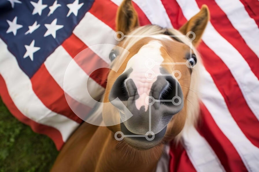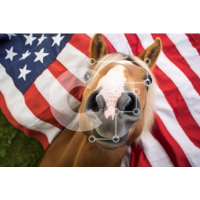 Υπάρχει δυνατότητα προσωποποίησης με δική σας φωτογραφία και προσαρμογής διαστάσεων κατόπιν παραγγελίας. Το συγεκεριμενο Puzzle 10x10 cm – 25 κομμ παρουσιαζει Η εικόνα απεικονίζει ένα καφέ άλογο με τη μύτη του να βγαίνει από μια αμερικανική σημαία. Το άλογο στέκεται μπροστά από τη σημαία, κάτι που μπορεί να υποδηλώνει ότι είναι έτοιμο να χαιρετήσει τον θεατή. Θα μπορούσε επίσης να σημαίνει ότι το
