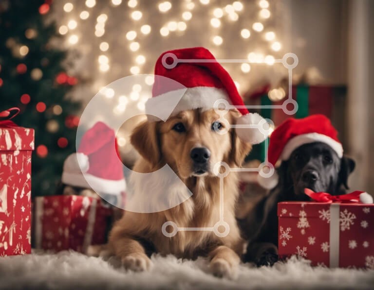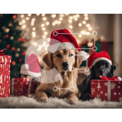 Υπάρχει δυνατότητα προσωποποίησης με δική σας φωτογραφία και προσαρμογής διαστάσεων κατόπιν παραγγελίας. Το συγεκεριμενο Puzzle 10x10 cm – 25 κομμ παρουσιαζει Αυτή η εικόνα παρουσιάζει τρία σκυλιά που φορούν καπέλα Άγιου Βασίλη και κάθονται σε μια κουβέρτα με δώρα από κάτω. Τα σκυλιά είναι σε παιχνιδιάρικη διάθεση και πιθανότατα απολαμβάνουν το χρόνο τους μαζί. Είναι μια συγκινητική σκηνή που δείχ