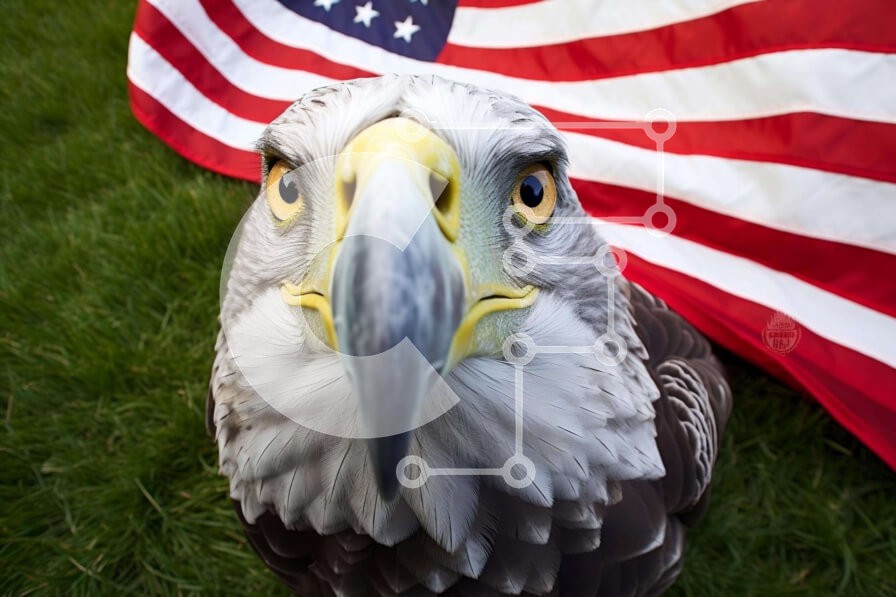 Υπάρχει δυνατότητα προσωποποίησης με δική σας φωτογραφία και προσαρμογής διαστάσεων κατόπιν παραγγελίας. Το συγεκεριμενο Puzzle 10x10 cm – 25 κομμ παρουσιαζει Η εικόνα δείχνει έναν μεγάλο φαλακρό αετό να στέκεται μπροστά από μια αμερικανική σημαία. Το κεφάλι του πουλιού είναι γερμένο στο πλάι και το ράμφος του είναι ανοιχτό, υποδηλώνοντας ότι είναι σκαρφαλωμένο πάνω στο γρασίδι. Φαίνεται να κοιτάζ