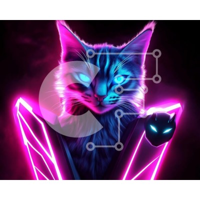Υπάρχει δυνατότητα προσωποποίησης με δική σας φωτογραφία και προσαρμογής διαστάσεων κατόπιν παραγγελίας. Το συγεκεριμενο Puzzle 10x10 cm – 25 κομμ παρουσιαζει Αυτή η εικόνα παρουσιάζει μια στυλιζαρισμένη γάτα με λαμπερά μπλε μάτια, σε σκούρο φόντο με ζωηρό ροζ και μοβ φωτισμό. Η γάτα φαίνεται να έχει μια μεγαλειώδη και ελαφρώς άγρια έκφραση, που ενσαρκώνει μια μυστικιστική γοητεία. Η δημιουργική