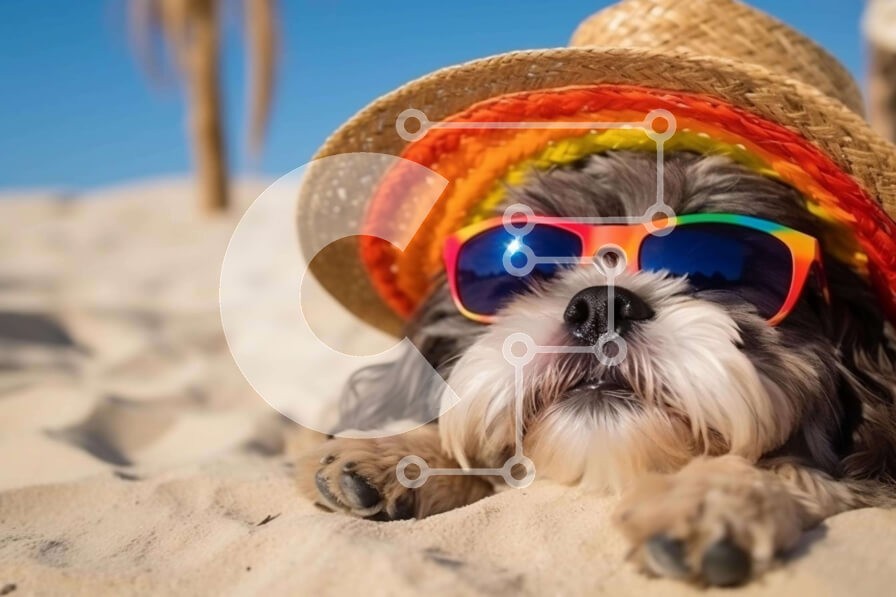 Υπάρχει δυνατότητα προσωποποίησης με δική σας φωτογραφία και προσαρμογής διαστάσεων κατόπιν παραγγελίας. Το συγεκεριμενο Puzzle 10x10 cm – 25 κομμ παρουσιαζει Η εικόνα δείχνει ένα μικρό σκυλί που φοράει γυαλιά ηλίου και ξαπλώνει στην άμμο. Ο σκύλος μπορεί να απολαμβάνει την ώρα του στην παραλία με τον ιδιοκτήτη του ή μπορεί απλά να χαλαρώνει και να απολαμβάνει τον ήλιο. Είναι πιθανό ο σκύλος να συ