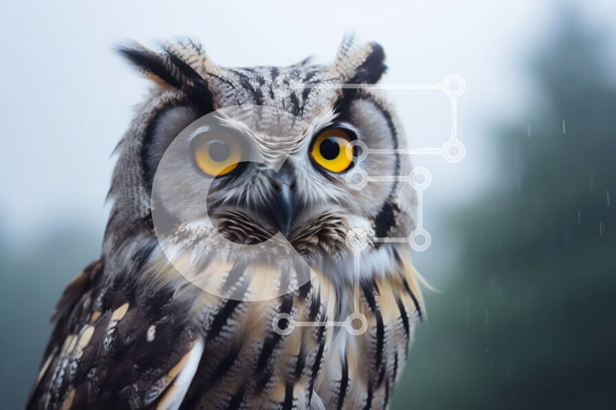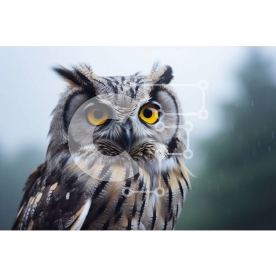 Υπάρχει δυνατότητα προσωποποίησης με δική σας φωτογραφία και προσαρμογής διαστάσεων κατόπιν παραγγελίας. Το συγεκεριμενο Puzzle 10x10 cm – 25 κομμ παρουσιαζει Αυτή η εικόνα δείχνει μια μεγάλη κουκουβάγια να στέκεται στη βροχή με τα μάτια της ορθάνοιχτα. Η κουκουβάγια φαίνεται να κοιτάζει απευθείας την κάμερα, υποδεικνύοντας την περιέργεια ή το ενδιαφέρον της. Η γύρω περιοχή είναι γεμάτη με διάφορα
