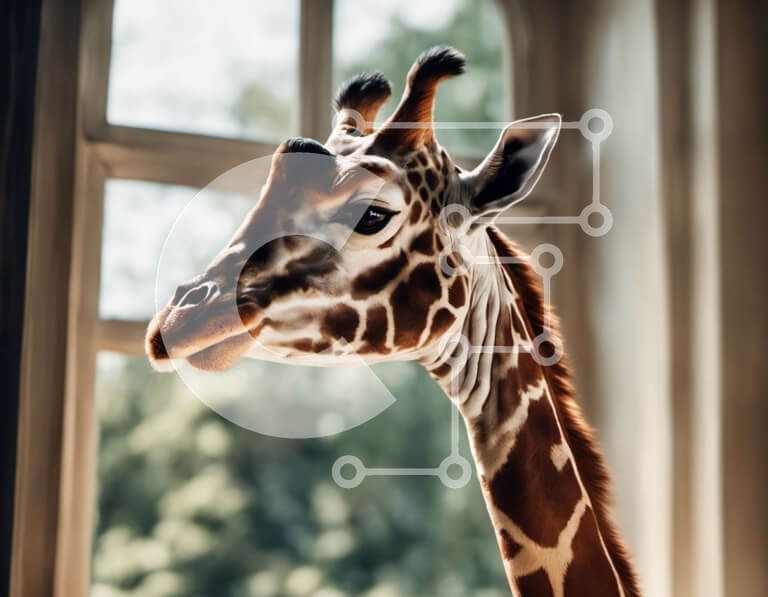 Υπάρχει δυνατότητα προσωποποίησης με δική σας φωτογραφία και προσαρμογής διαστάσεων κατόπιν παραγγελίας. Το συγεκεριμενο Puzzle 10x10 cm – 25 κομμ παρουσιαζει Αυτή η εικόνα παρουσιάζει μια καμηλοπάρδαλη να στέκεται κοντά σε ένα παράθυρο και να κοιτάζει έξω. Ο μακρύς λαιμός και τα διακριτικά σημάδια της καμηλοπάρδαλης είναι ευδιάκριτα, καθώς κοιτάζει με περιέργεια κάτι έξω. Η σύνθεση του πλάνου προ