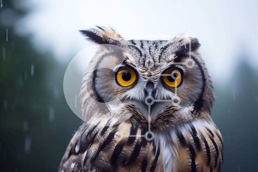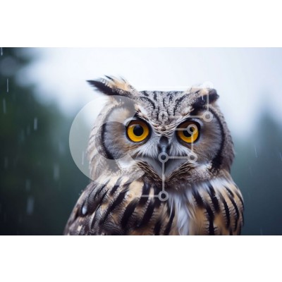 Υπάρχει δυνατότητα προσωποποίησης με δική σας φωτογραφία και προσαρμογής διαστάσεων κατόπιν παραγγελίας. Το συγεκεριμενο Puzzle 10x10 cm – 25 κομμ παρουσιαζει Αυτή η εικόνα παρουσιάζει μια μεγάλη κουκουβάγια να στέκεται στη βροχή με τα μάτια της ορθάνοιχτα. Γύρω από την κουκουβάγια υπάρχουν πολλά δέντρα, που υποδηλώνουν το φυσικό της περιβάλλον. Η παρουσία της κουκουβάγιας στη βροχή προσθέτει ένα