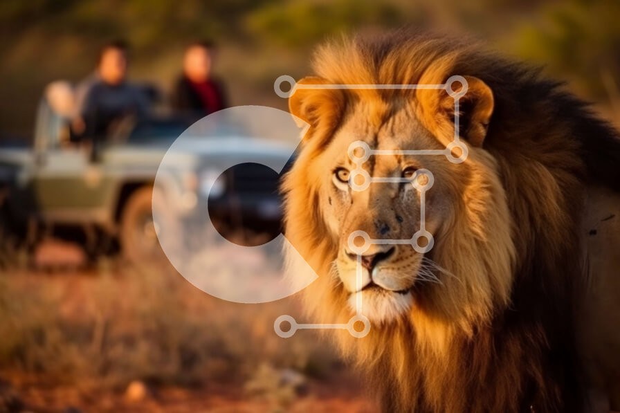 Υπάρχει δυνατότητα προσωποποίησης με δική σας φωτογραφία και προσαρμογής διαστάσεων κατόπιν παραγγελίας. Το συγεκεριμενο Puzzle 10x10 cm – 25 κομμ παρουσιαζει Αυτή η εικόνα είναι ενός λιονταριού που στέκεται σε έναν χωματόδρομο με ένα τζιπ ορατό στο φόντο. Το λιοντάρι στέκεται ψηλό και δυνατό, με το βλέμμα του στραμμένο στην απόσταση. Ο χωματόδρομος και το γύρω τοπίο δημιουργούν ένα τραχύ και άγρι