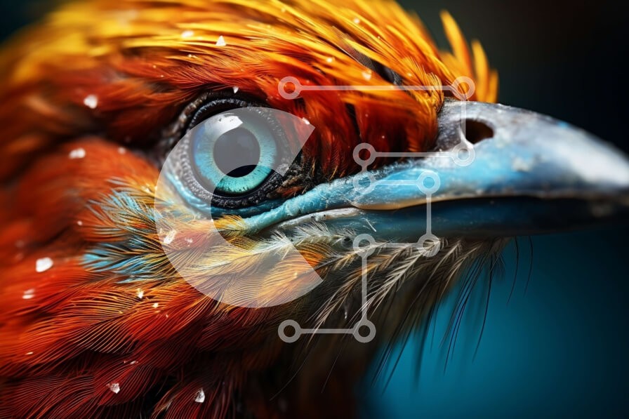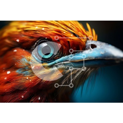 Υπάρχει δυνατότητα προσωποποίησης με δική σας φωτογραφία και προσαρμογής διαστάσεων κατόπιν παραγγελίας. Το συγεκεριμενο Puzzle 10x10 cm – 25 κομμ παρουσιαζει Αυτή η εικόνα είναι μια κοντινή λήψη του κεφαλιού ενός πουλιού. Το πουλί έχει έντονα χρωματιστά φτερά σε κόκκινο, πορτοκαλί και κίτρινο χρώμα. Το ράμφος του είναι μακρύ και κυρτό και τα μάτια του μεγάλα και μπλε. Το πουλί φαίνεται να κοιτάζε