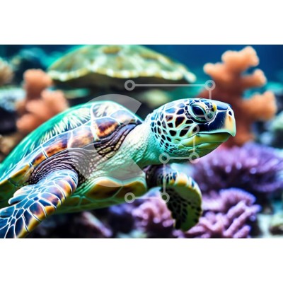 Υπάρχει δυνατότητα προσωποποίησης με δική σας φωτογραφία και προσαρμογής διαστάσεων κατόπιν παραγγελίας. Το συγεκεριμενο Puzzle 10x10 cm – 25 κομμ παρουσιαζει Αυτή η εικόνα δείχνει μια ζωντανή θαλάσσια χελώνα που κολυμπά μέσα σε έναν πολύχρωμο κοραλλιογενή ύφαλο. Το περίπλοκο κέλυφος της χελώνας εμφανίζει έναν εκπληκτικό συνδυασμό πρασίνων, καφέ και κίτρινων, ενώ το πρόσωπό της διαθέτει ξεχωριστά