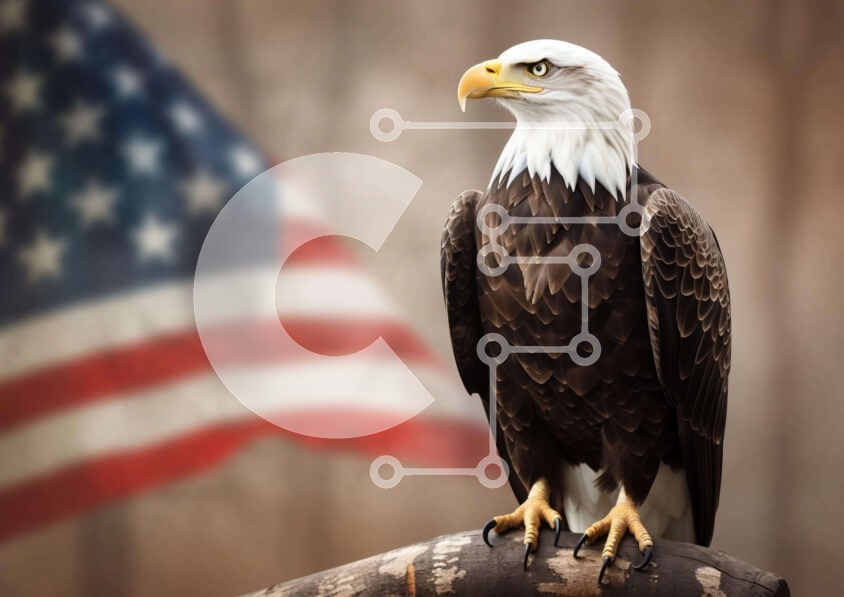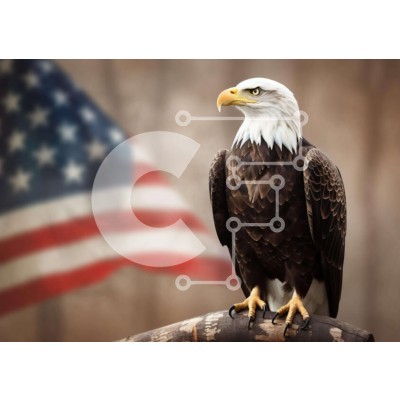 Υπάρχει δυνατότητα προσωποποίησης με δική σας φωτογραφία και προσαρμογής διαστάσεων κατόπιν παραγγελίας. Το συγεκεριμενο Puzzle 10x10 cm – 25 κομμ παρουσιαζει Αυτή η εικόνα παρουσιάζει έναν μεγαλοπρεπή αετό σκαρφαλωμένο σε ένα κλαδί, με την αμερικανική σημαία στο βάθος. Ο αετός πιθανότατα κοιτάζει τη σημαία και φαίνεται να κοιτάει μακριά από την κάμερα. Μπορεί να υπάρχουν άλλα πουλιά ή ζώα όπως ελ