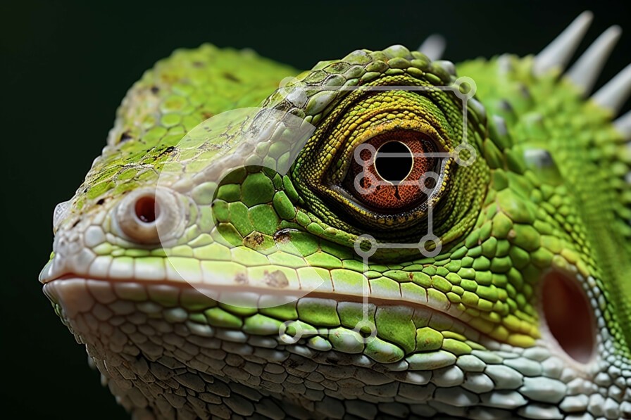 Υπάρχει δυνατότητα προσωποποίησης με δική σας φωτογραφία και προσαρμογής διαστάσεων κατόπιν παραγγελίας. Το συγεκεριμενο Puzzle 10x10 cm – 25 κομμ παρουσιαζει Αυτή η εικόνα είναι μια κοντινή όψη του κεφαλιού μιας σαύρας. Η σαύρα έχει πράσινο σώμα με λευκές κηλίδες και κίτρινα μάτια. Το κεφάλι του είναι επίμηκες με μυτερό ρύγχος και το στόμα του ανοιχτό, αποκαλύπτοντας αιχμηρά δόντια. Η γλώσσα της