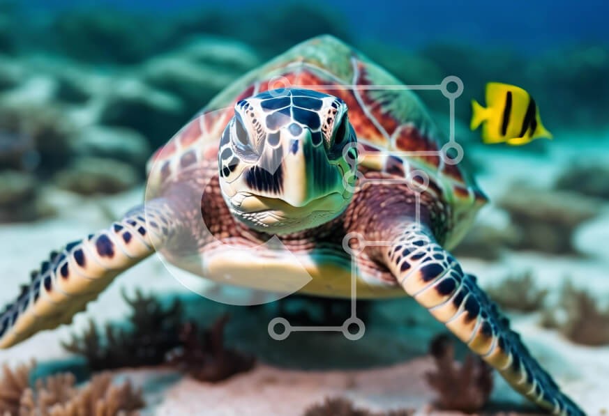 Υπάρχει δυνατότητα προσωποποίησης με δική σας φωτογραφία και προσαρμογής διαστάσεων κατόπιν παραγγελίας. Το συγεκεριμενο Puzzle 10x10 cm – 25 κομμ παρουσιαζει Αυτή η εικόνα δείχνει μια ζωντανή θαλάσσια χελώνα που κολυμπά με χάρη στα καταγάλανα νερά. Η χελώνα εμφανίζεται σε εμφανές σημείο στο πρώτο πλάνο, με περίπλοκα σχέδια στο καβούκι της και μια ήρεμη, περίεργη έκφραση. Στο βάθος, ένα μικρό κίτρ