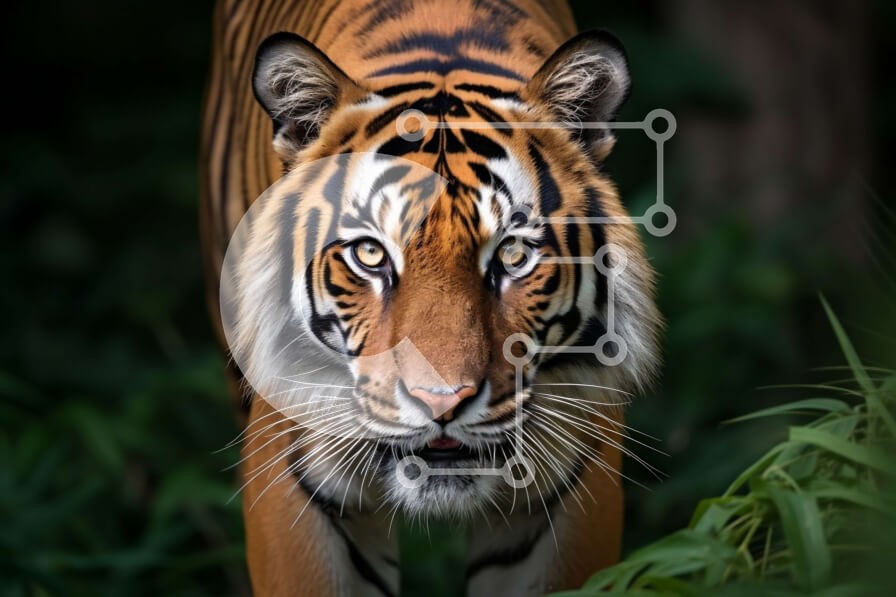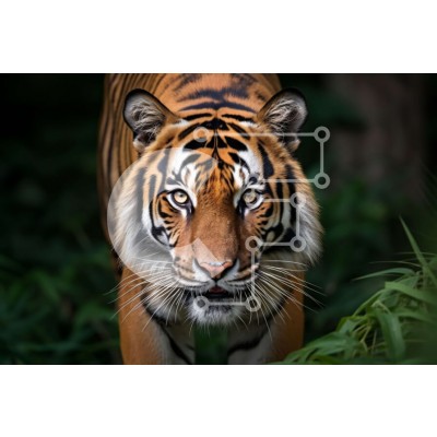 Υπάρχει δυνατότητα προσωποποίησης με δική σας φωτογραφία και προσαρμογής διαστάσεων κατόπιν παραγγελίας. Το συγεκεριμενο Puzzle 10x10 cm – 25 κομμ παρουσιαζει Αυτή η εικόνα απεικονίζει μια τίγρη που περπατά σε ένα πυκνό δάσος. Η τίγρη έχει σκούρο καφέ τρίχωμα με μαύρες ρίγες και έντονα κίτρινα μάτια. Με την περιποιημένη γούνα, το μυώδες σώμα και τη μακριά ουρά της, η τίγρη αποπνέει δύναμη και δύνα