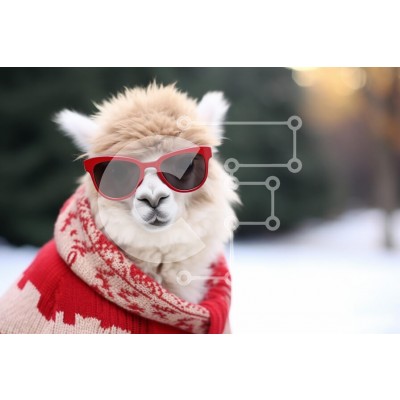 Υπάρχει δυνατότητα προσωποποίησης με δική σας φωτογραφία και προσαρμογής διαστάσεων κατόπιν παραγγελίας. Το συγεκεριμενο Puzzle 10x10 cm – 25 κομμ παρουσιαζει Η εικόνα παρουσιάζει μια γοητευτική λάμα που φοράει κόκκινα γυαλιά ηλίου και ένα μοτίβο κόκκινο και λευκό κασκόλ, σε ένα απαλά θολό φόντο πρασίνου. Το αφράτο παλτό της λάμα και τα παιχνιδιάρικα αξεσουάρ προσθέτουν μια ιδιότροπη πινελιά στη σ