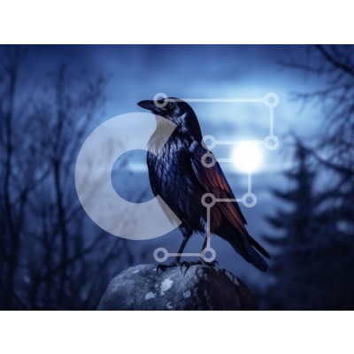 Υπάρχει δυνατότητα προσωποποίησης με δική σας φωτογραφία και προσαρμογής διαστάσεων κατόπιν παραγγελίας. Το συγεκεριμενο Puzzle 10x10 cm – 25 κομμ παρουσιαζει Η εικόνα παρουσιάζει ένα κοράκι σκαρφαλωμένο σε έναν λείο βράχο, με φόντο ένα δραματικό σκηνικό ενός σκοτεινού, κυκλοθυμικού ουρανού που φωτίζεται από ένα λαμπερό φεγγάρι. Τα φτερά του κορακιού είναι ιριδίζοντα, αντανακλούν τις αποχρώσεις το