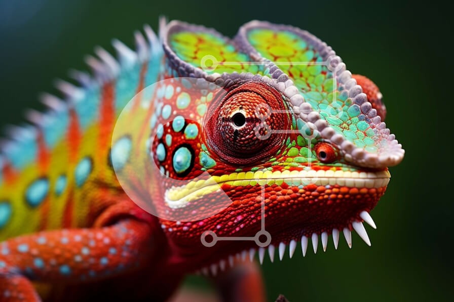 Υπάρχει δυνατότητα προσωποποίησης με δική σας φωτογραφία και προσαρμογής διαστάσεων κατόπιν παραγγελίας. Το συγεκεριμενο Puzzle 10x10 cm – 25 κομμ παρουσιαζει Αυτή η εικόνα παρουσιάζει έναν πολύχρωμο χαμαιλέοντα με φωτεινά πράσινα, μπλε και κόκκινα σημεία στο σώμα του. Ο χαμαιλέοντας είναι σκαρφαλωμένος σε ένα κλαδί ή ένα κλαδάκι, με το κεφάλι του να γέρνει προς τη μία πλευρά και τα μάτια να είναι