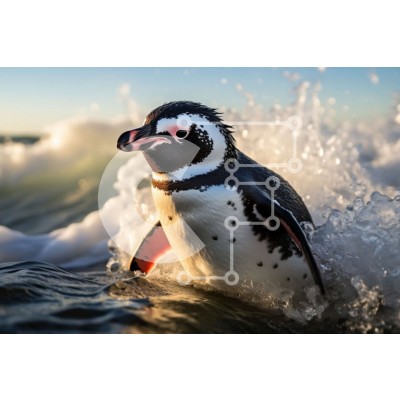 Υπάρχει δυνατότητα προσωποποίησης με δική σας φωτογραφία και προσαρμογής διαστάσεων κατόπιν παραγγελίας. Το συγεκεριμενο Puzzle 10x10 cm – 25 κομμ παρουσιαζει Αυτή η εικόνα δείχνει έναν πιγκουίνο να στέκεται στην ακτή ενός υδάτινου όγκου, με κύματα να σκάνε γύρω του. Ο πιγκουίνος στέκεται στα πίσω του πόδια και φαίνεται να κοιτάζει προς τη θάλασσα. Ο πιγκουίνος είναι ασπρόμαυρος με μικρό ράμφος κα