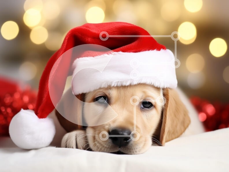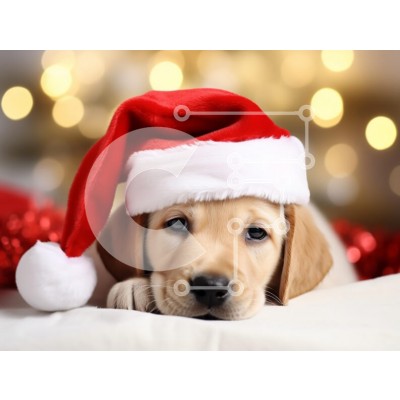 Υπάρχει δυνατότητα προσωποποίησης με δική σας φωτογραφία και προσαρμογής διαστάσεων κατόπιν παραγγελίας. Το συγεκεριμενο Puzzle 10x10 cm – 25 κομμ παρουσιαζει Αυτή η εικόνα παρουσιάζει ένα χαριτωμένο κουτάβι που φορά ένα κόκκινο και άσπρο καπέλο του Άη Βασίλη, ξαπλωμένο και κοιτάζει απευθείας την κάμερα με αξιολάτρευτα μάτια. Το φόντο είναι απαλά θολό με ζεστά χρυσά φώτα bokeh, δημιουργώντας μια ε