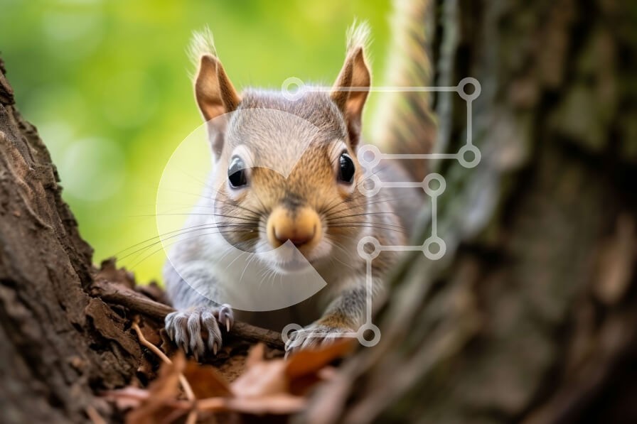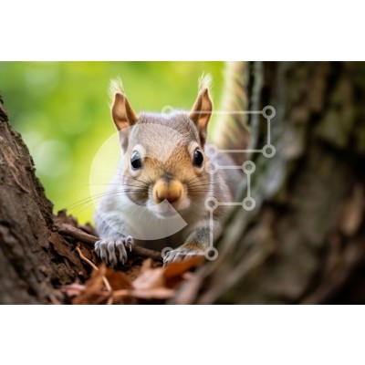 Υπάρχει δυνατότητα προσωποποίησης με δική σας φωτογραφία και προσαρμογής διαστάσεων κατόπιν παραγγελίας. Το συγεκεριμενο Puzzle 10x10 cm – 25 κομμ παρουσιαζει Αυτή η εικόνα είναι μια κοντινή άποψη ενός σκίουρου που κρυφοκοιτάζει πίσω από έναν κορμό δέντρου. Ο σκίουρος έχει γκρίζα γούνα και καστανά μάτια και φαίνεται να κοιτάζει απευθείας την κάμερα με μια περίεργη έκφραση. Ο κορμός του δέντρου καλ