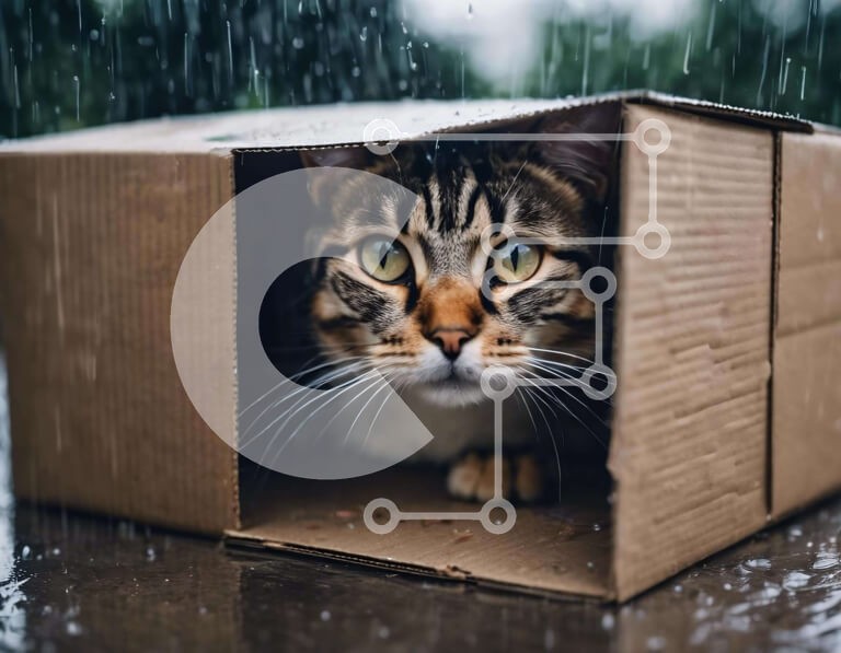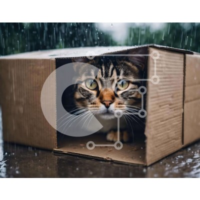 Υπάρχει δυνατότητα προσωποποίησης με δική σας φωτογραφία και προσαρμογής διαστάσεων κατόπιν παραγγελίας. Το συγεκεριμενο Puzzle 10x10 cm – 25 κομμ παρουσιαζει Η εικόνα δείχνει μια τιγρέ γάτα να κάθεται μέσα σε ένα ανοιχτό χαρτόκουτο στη βροχή. Η γάτα φαίνεται να κοιτάζει έξω από το κουτί, ίσως περιέργεια για τον υγρό καιρό έξω ή αναζητά καταφύγιο από τα αρπακτικά. Ένα μοναδικό Puzzle 10x10 cm – 2