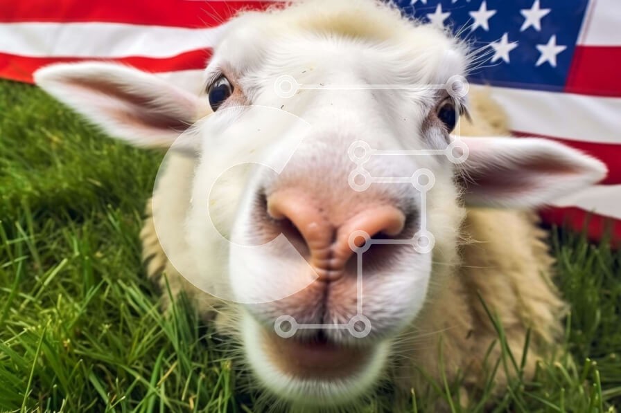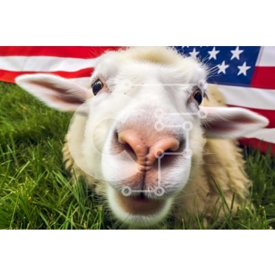 Υπάρχει δυνατότητα προσωποποίησης με δική σας φωτογραφία και προσαρμογής διαστάσεων κατόπιν παραγγελίας. Το συγεκεριμενο Puzzle 10x10 cm – 25 κομμ παρουσιαζει Η εικόνα δείχνει ένα πρόβατο να στέκεται στο γρασίδι δίπλα σε μια αμερικανική σημαία. Το πρόσωπο του προβάτου είναι κοντά στην κάμερα και φαίνεται να κοιτάζει απευθείας τον θεατή. Μπορεί επίσης να είναι περίεργο για το φόντο της εικόνας, καθ