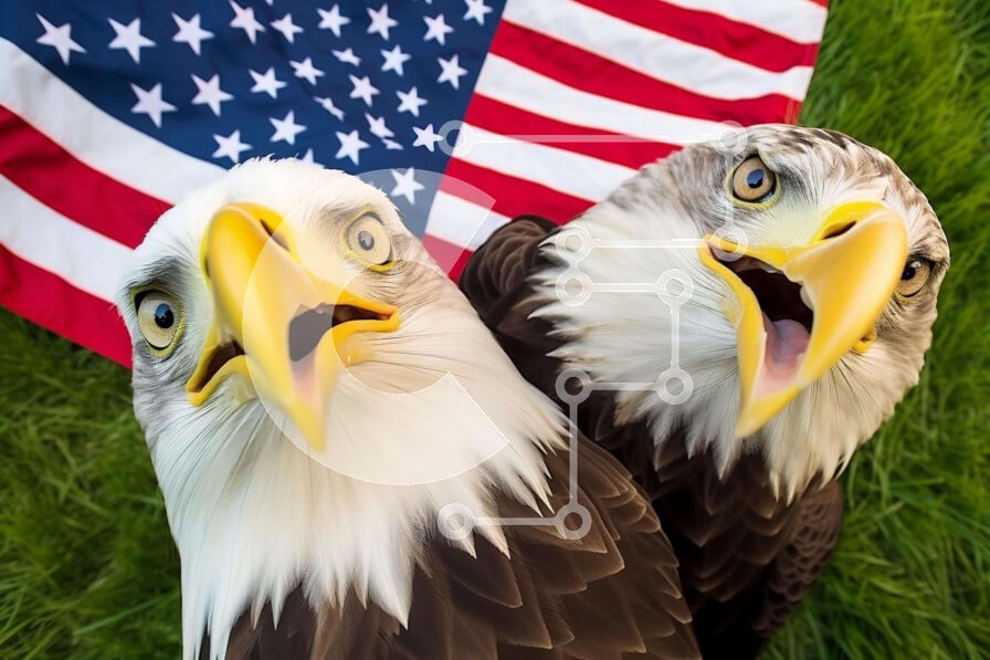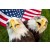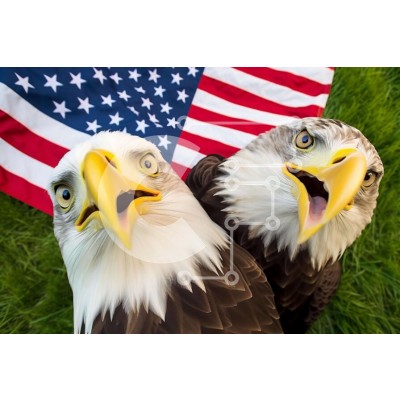 Υπάρχει δυνατότητα προσωποποίησης με δική σας φωτογραφία και προσαρμογής διαστάσεων κατόπιν παραγγελίας. Το συγεκεριμενο Puzzle 10x10 cm – 25 κομμ παρουσιαζει Η εικόνα παρουσιάζει δύο φαλακρούς αετούς που στέκονται μπροστά από μια αμερικανική σημαία. Τα πουλιά είναι το ένα απέναντι στο άλλο, με το ράμφος τους ανοιχτό και τα κεφάλια τους γερμένα στο πλάι. Υπάρχει ένα φόντο με γρασίδι πίσω από τα πο