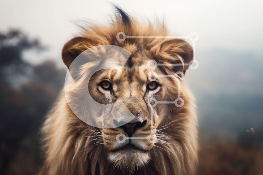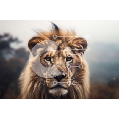 Υπάρχει δυνατότητα προσωποποίησης με δική σας φωτογραφία και προσαρμογής διαστάσεων κατόπιν παραγγελίας. Το συγεκεριμενο Puzzle 10x10 cm – 25 κομμ παρουσιαζει Αυτή η κοντινή εικόνα δείχνει τη βασιλική ομορφιά ενός ενήλικου λιονταριού. Το λιοντάρι έχει ένα χοντρό τρίχωμα και φαίνεται να στέκεται μπροστά σε ψηλά χόρτα και δέντρα. Η εικόνα απαθανατίζει επίσης έντομα που πετούν γύρω από το πρόσωπο του