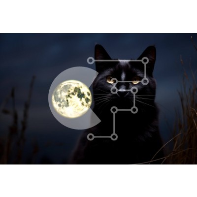 Υπάρχει δυνατότητα προσωποποίησης με δική σας φωτογραφία και προσαρμογής διαστάσεων κατόπιν παραγγελίας. Το συγεκεριμενο Puzzle 10x10 cm – 25 κομμ παρουσιαζει Αυτή η εικόνα παρουσιάζει μια μαύρη γάτα που κάθεται σε ένα χωράφι τη νύχτα, κοιτάζοντας ψηλά την πανσέληνο στον ουρανό. Η σιλουέτα της γάτας έρχεται σε όμορφη αντίθεση με τον σκοτεινό νυχτερινό ουρανό και το φεγγάρι λάμπει έντονα, φωτίζοντα