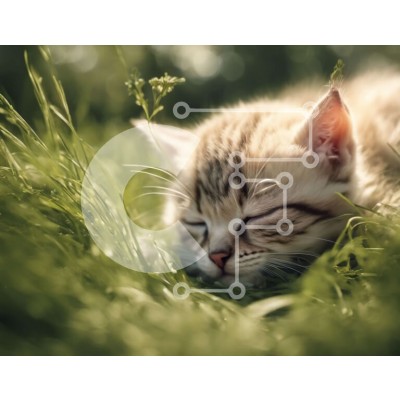 Υπάρχει δυνατότητα προσωποποίησης με δική σας φωτογραφία και προσαρμογής διαστάσεων κατόπιν παραγγελίας. Το συγεκεριμενο Puzzle 10x10 cm – 25 κομμ παρουσιαζει Αυτή η εικόνα παρουσιάζει ένα μικρό γατάκι ξαπλωμένο στο γρασίδι. Το γατάκι είναι ξαπλωμένο στο πλάι με τα μάτια του κλειστά και τα πόδια του κρυμμένα κάτω από το σώμα του. Το ψηλό και πράσινο γρασίδι περιβάλλει το γατάκι, με λουλούδια ορατά