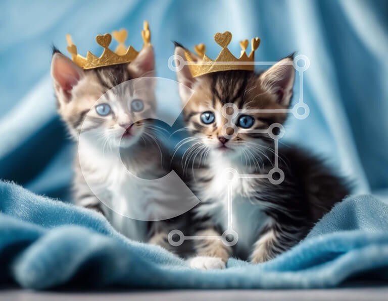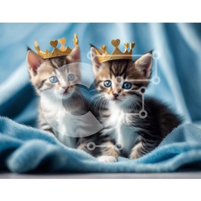 Υπάρχει δυνατότητα προσωποποίησης με δική σας φωτογραφία και προσαρμογής διαστάσεων κατόπιν παραγγελίας. Το συγεκεριμενο Puzzle 10x10 cm – 25 κομμ παρουσιαζει Αυτή η εικόνα παρουσιάζει δύο αξιολάτρευτα γατάκια που φορούν χρυσές κορώνες. Κάθονται σε μια μπλε κουβέρτα και κοιτάζονται με περίεργα μάτια. Αιχμαλωτίζει μια παιχνιδιάρικη στιγμή ανάμεσα στα γατάκια, πιθανώς ενώ περιποιούνται ή συμμετέχουν