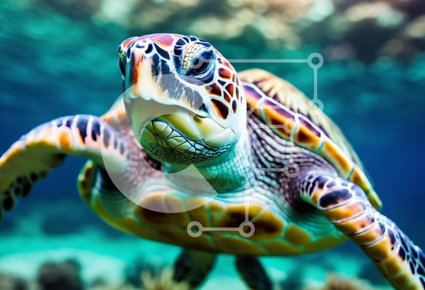 Υπάρχει δυνατότητα προσωποποίησης με δική σας φωτογραφία και προσαρμογής διαστάσεων κατόπιν παραγγελίας. Το συγεκεριμενο Puzzle 10x10 cm – 25 κομμ παρουσιαζει Αυτή η εικόνα παρουσιάζει μια ζωντανή θαλάσσια χελώνα που κολυμπά με χάρη στα καταγάλανα νερά. Το πολύχρωμο κέλυφος της χελώνας είναι στολισμένο με περίπλοκα σχέδια, αναδεικνύοντας τη φυσική ομορφιά της. Γύρω από τη χελώνα, το υποθαλάσσιο το