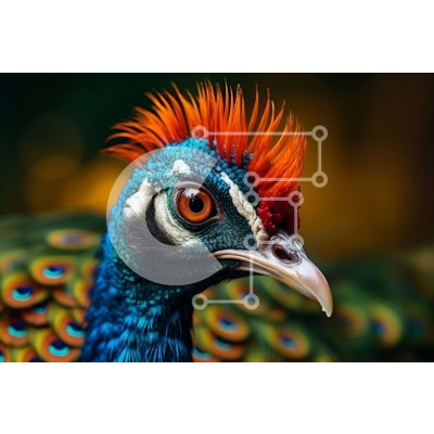 Υπάρχει δυνατότητα προσωποποίησης με δική σας φωτογραφία και προσαρμογής διαστάσεων κατόπιν παραγγελίας. Το συγεκεριμενο Puzzle 10x10 cm – 25 κομμ παρουσιαζει Αυτή η εικόνα είναι μια κοντινή όψη του κεφαλιού ενός παγωνιού. Το πουλί έχει έντονα χρωματιστά φτερά με μπλε και πράσινο μοχαύκ. Τα φτερά απλώνονται, δίνοντας ένα αστραφτερό αποτέλεσμα στο φως. Τα μάτια του πουλιού είναι λαμπερά και φαίνετα