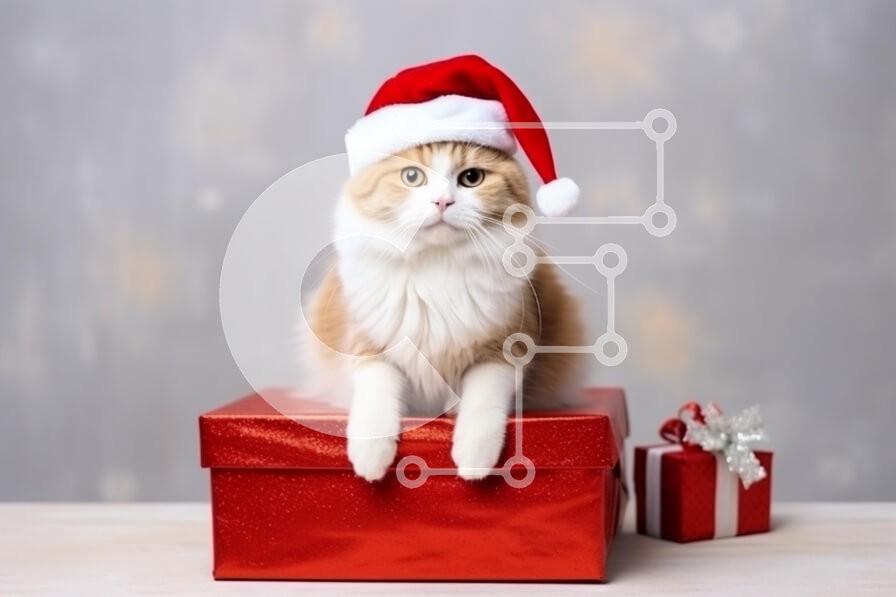Υπάρχει δυνατότητα προσωποποίησης με δική σας φωτογραφία και προσαρμογής διαστάσεων κατόπιν παραγγελίας. Το συγεκεριμενο Puzzle 10x10 cm – 25 κομμ παρουσιαζει Η εικόνα δείχνει μια χνουδωτή γάτα που φορά ένα εορταστικό κόκκινο καπέλο του Άγιου Βασίλη, κάθεται πάνω σε ένα γυαλιστερό κόκκινο κουτί δώρου. Η γάτα έχει ένα ελαφρύ κρεμ και πορτοκαλί παλτό και η έκφρασή της είναι ήρεμη και γαλήνια, προσθέ