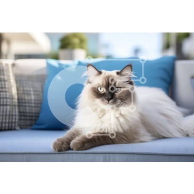 Υπάρχει δυνατότητα προσωποποίησης με δική σας φωτογραφία και προσαρμογής διαστάσεων κατόπιν παραγγελίας. Το συγεκεριμενο Puzzle 10x10 cm – 25 κομμ παρουσιαζει Αυτή η εικόνα δείχνει μια χνουδωτή λευκή και γκρίζα γάτα ξαπλωμένη σε έναν μπλε καναπέ. Η γούνα της γάτας είναι μακριά και χνουδωτά και τα μάτια της είναι λαμπερά και ξύπνια. Τα αυτιά της γάτας είναι κουρασμένα και η ουρά της είναι κουλουρια