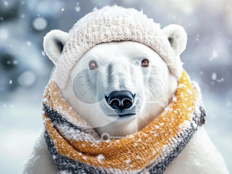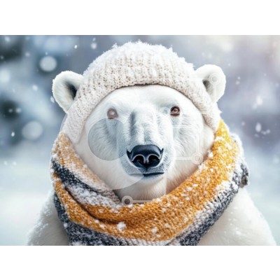 Υπάρχει δυνατότητα προσωποποίησης με δική σας φωτογραφία και προσαρμογής διαστάσεων κατόπιν παραγγελίας. Το συγεκεριμενο Puzzle 10x10 cm – 25 κομμ παρουσιαζει Αυτή η εικόνα παρουσιάζει μια πολική αρκούδα που φορά ένα πλεκτό καπέλο και ένα κασκόλ, που περιβάλλεται από ένα χιονισμένο τοπίο. Η γούνα της αρκούδας είναι λευκή, συνδυάζεται άψογα με το χειμωνιάτικο φόντο, ενώ τα αξεσουάρ προσθέτουν μια ι