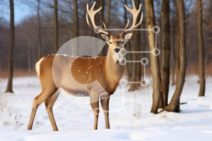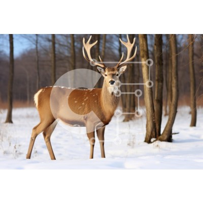 Υπάρχει δυνατότητα προσωποποίησης με δική σας φωτογραφία και προσαρμογής διαστάσεων κατόπιν παραγγελίας. Το συγεκεριμενο Puzzle 10x10 cm – 25 κομμ παρουσιαζει Αυτή η εικόνα παρουσιάζει ένα μεγαλοπρεπές ελάφι που στέκεται σε ένα χιονισμένο τοπίο, που περιβάλλεται από δέντρα που είναι γυμνά από φύλλα. Το ελάφι έχει εντυπωσιακά κέρατα και ατενίζει κατευθείαν τον θεατή. Το απαλό φως του ήλιου φωτίζει