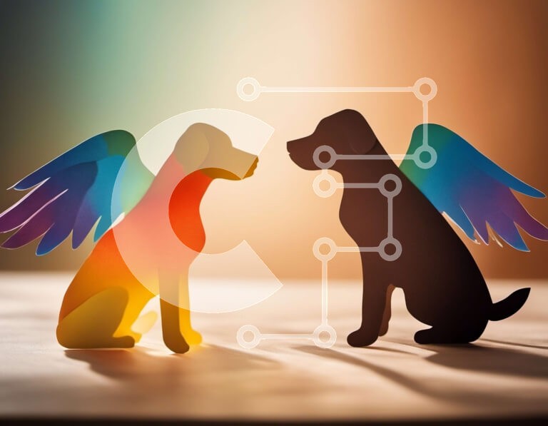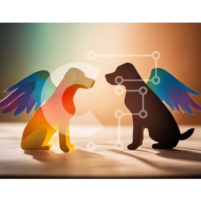 Υπάρχει δυνατότητα προσωποποίησης με δική σας φωτογραφία και προσαρμογής διαστάσεων κατόπιν παραγγελίας. Το συγεκεριμενο Puzzle 10x10 cm – 25 κομμ παρουσιαζει Αυτή η εικόνα παρουσιάζει δύο σκυλιά, ένα μαύρο και ένα καφέ, με φτερά στην πλάτη τους. Ο μαύρος σκύλος έχει τα φτερά του ανοιχτά, ενώ τα φτερά του καφέ σκύλου είναι διπλωμένα. Η εικόνα είναι έγχρωμη και έχει ένα απαλό, ζεστό εφέ φωτισμού.