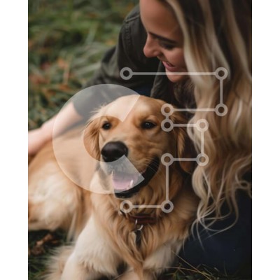 Υπάρχει δυνατότητα προσωποποίησης με δική σας φωτογραφία και προσαρμογής διαστάσεων κατόπιν παραγγελίας. Το συγεκεριμενο Puzzle 10x10 cm – 25 κομμ παρουσιαζει Η εικόνα δείχνει μια γυναίκα να γονατίζει στο γρασίδι δίπλα στον σκύλο της. Κρατάει το σκυλί στην αγκαλιά της και του χαμογελάει, κάτι που υποδηλώνει ότι απολαμβάνει να περνά χρόνο με το ζώο. Ο σκύλος μπορεί να είναι μέλος της οικογένειας τη