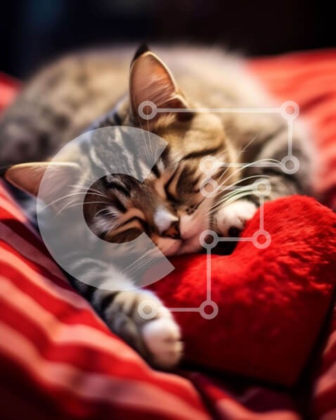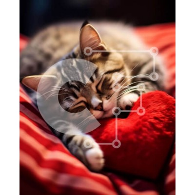Υπάρχει δυνατότητα προσωποποίησης με δική σας φωτογραφία και προσαρμογής διαστάσεων κατόπιν παραγγελίας. Το συγεκεριμενο Puzzle 10x10 cm – 25 κομμ παρουσιαζει Η εικόνα δείχνει μια γάτα ξαπλωμένη πάνω σε ένα πορτοκαλί και κόκκινο μαξιλάρι σε σχήμα καρδιάς. Το κεφάλι της γάτας είναι γερμένο στο πλάι, υποδηλώνοντας ότι ακουμπά το κεφάλι της στο μαξιλάρι καθώς κοιμάται. Υπάρχουν πολλές λωρίδες κόκκινο